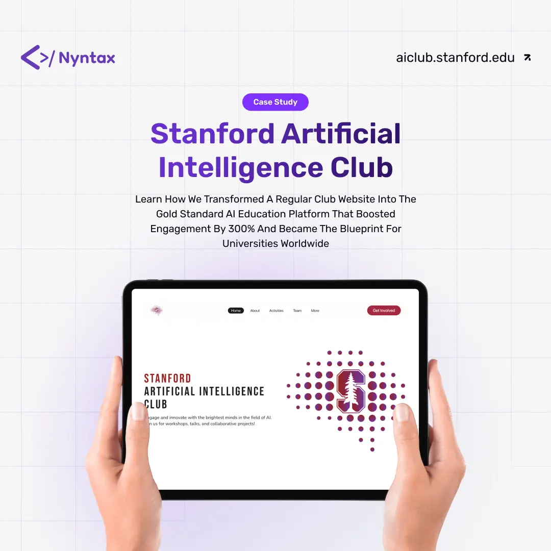 The Stanford Artificial Intelligence Club approached Nyntax with a vision to create more than just a platform. They wanted to build the next generation AI education platform that would democratize artificial intelligence education while fostering innovation and collaboration within the academic community. Our team delivered a cutting-edge, user-centric platform that serves as a hub for students, researchers, and professionals.